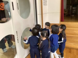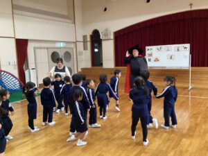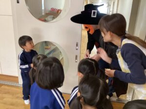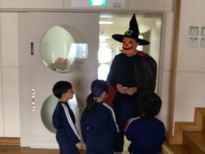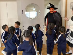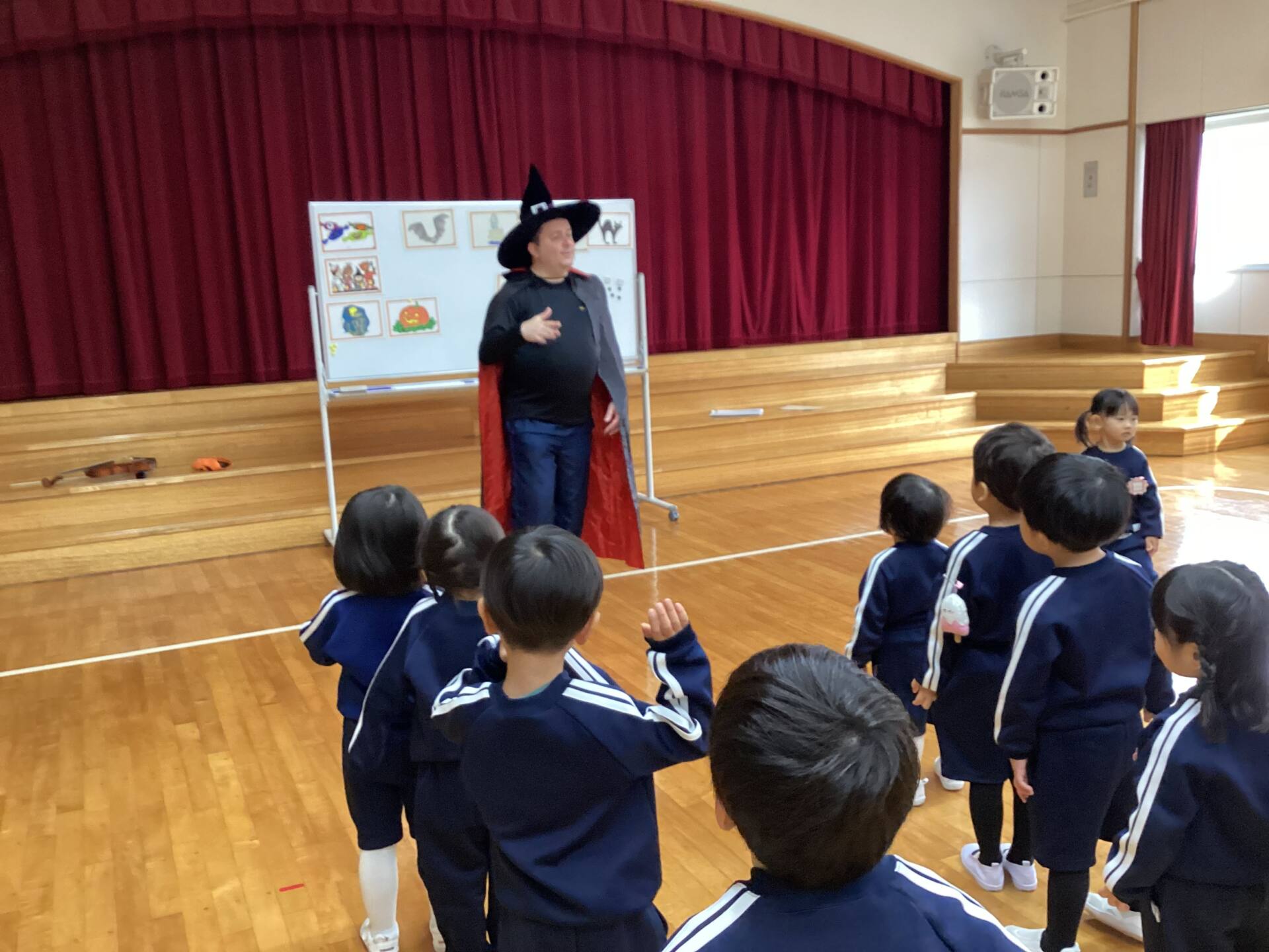 今日の英語あそびはハロウィンでした🎃面白おかしく教えてくださるトーマス先生に皆んなも笑顔で新しい単語