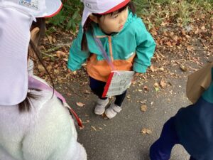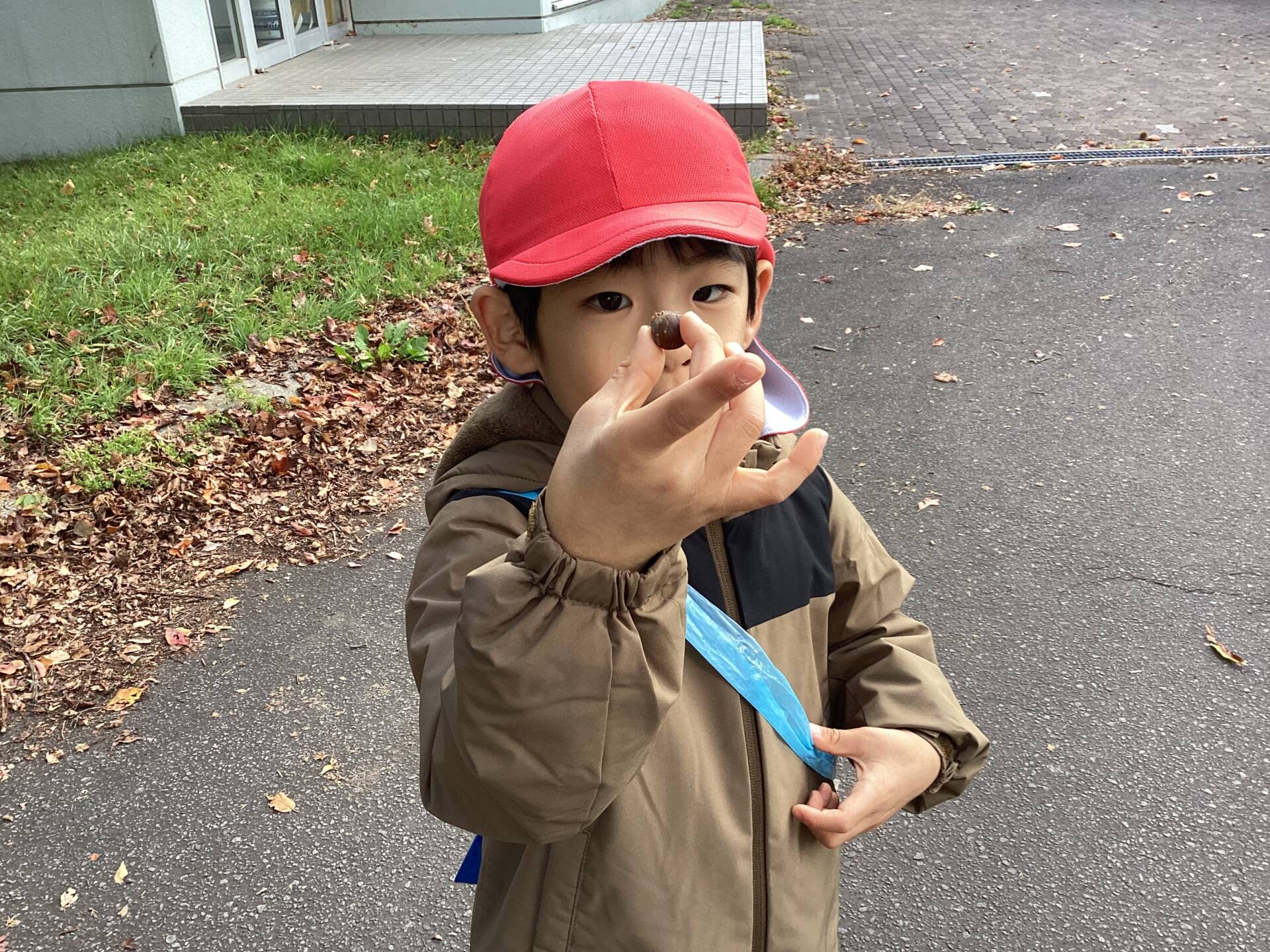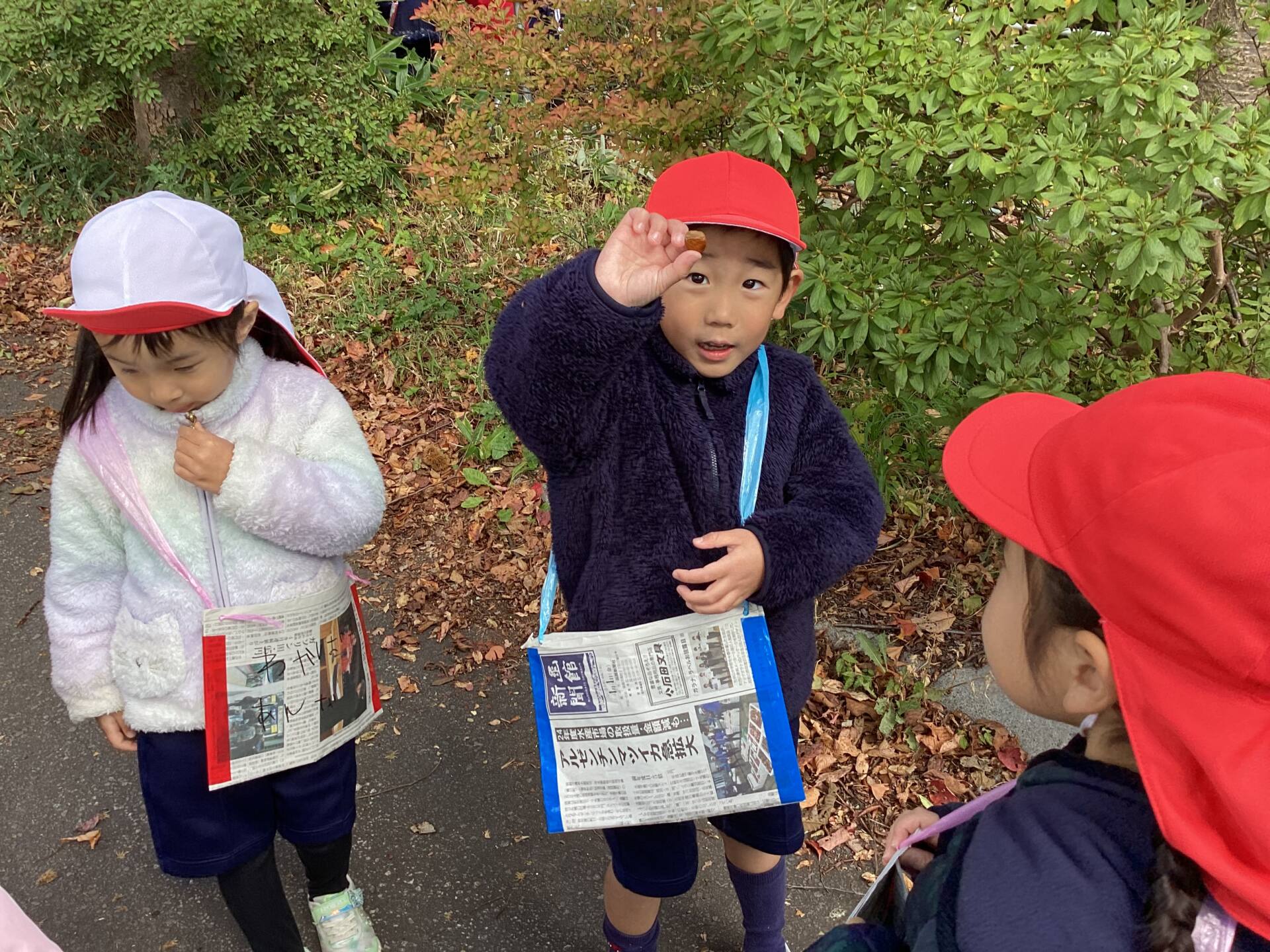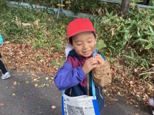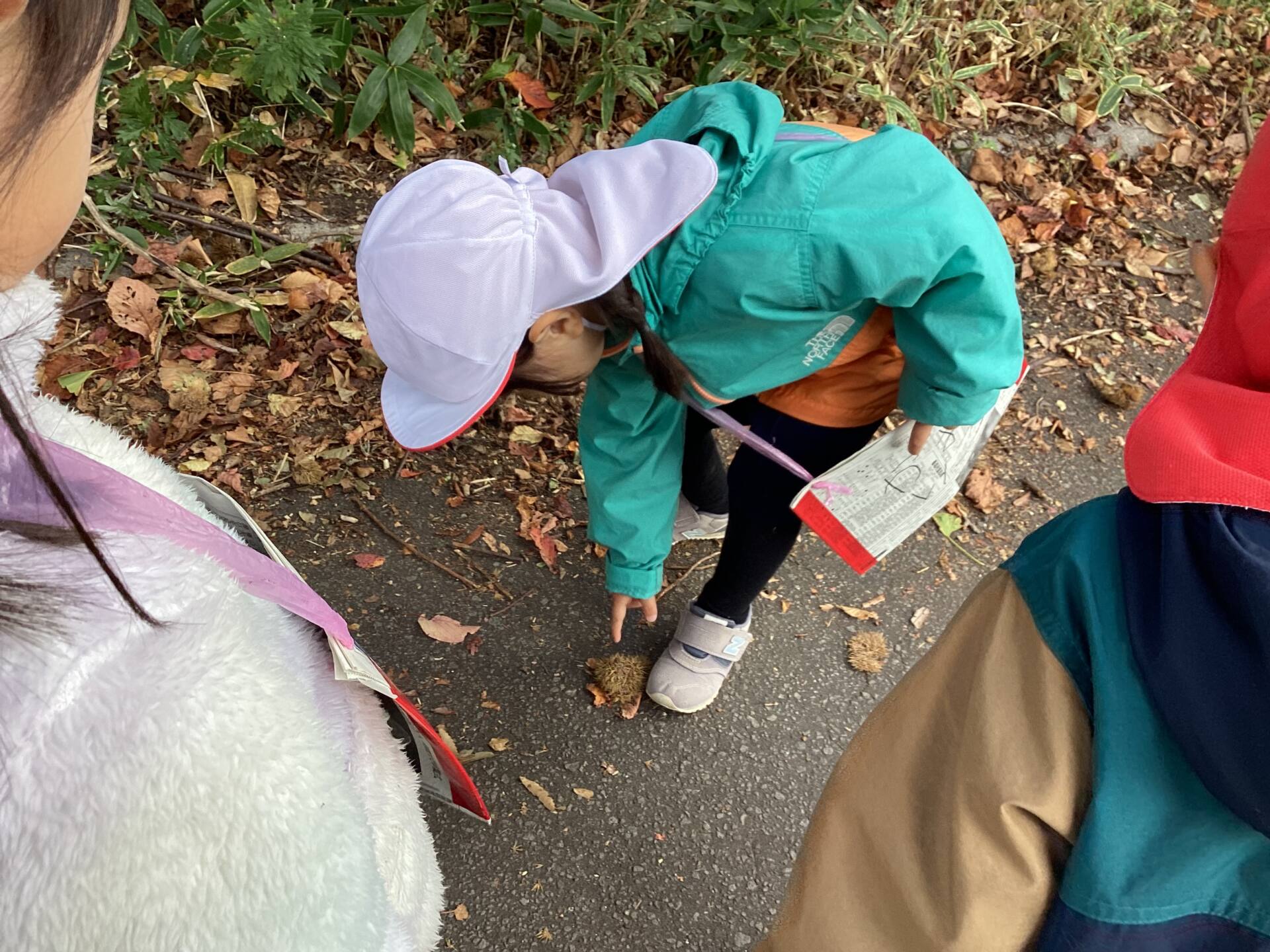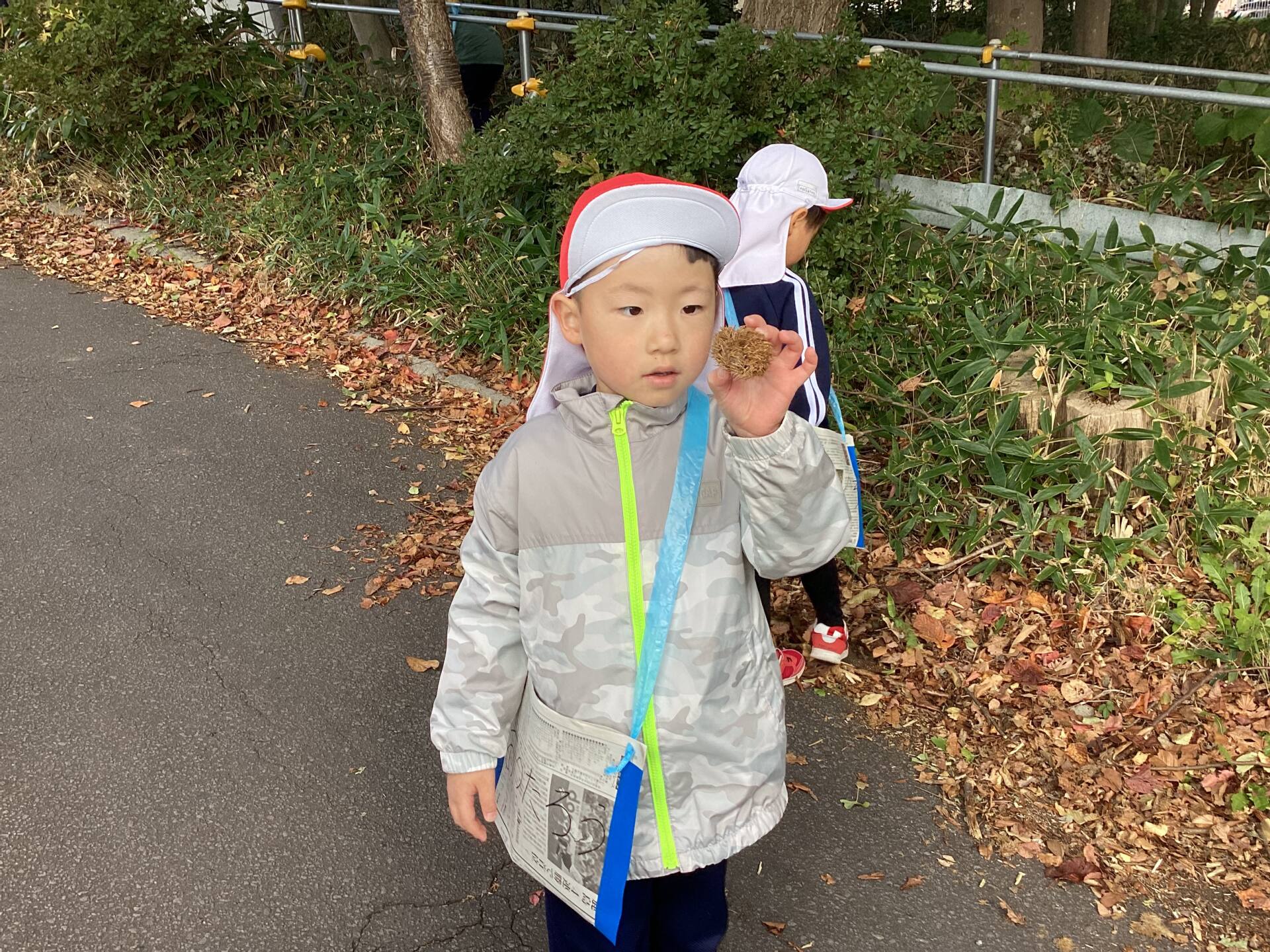 綺麗な落ち葉🍂や栗🌰を見つけて大切そうにバッグにしまっていました❣️