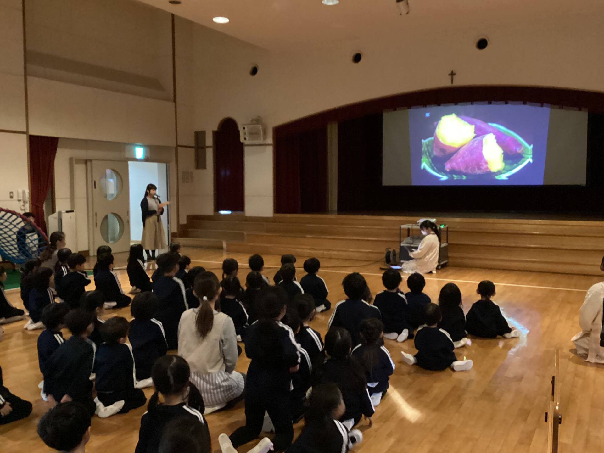 運ばれてくる過程を知ったり、体を作る三大栄養素をクイズ形式で当てたりしながら楽しく学びました♪神様のお恵みに感謝する1日になりました🥕🍠🥔