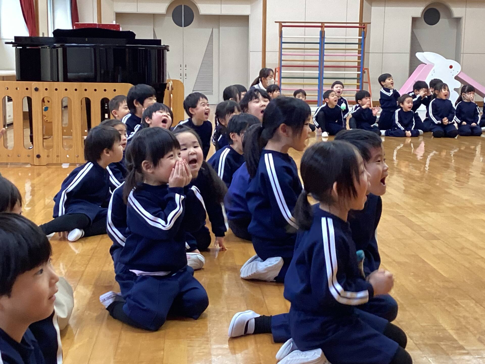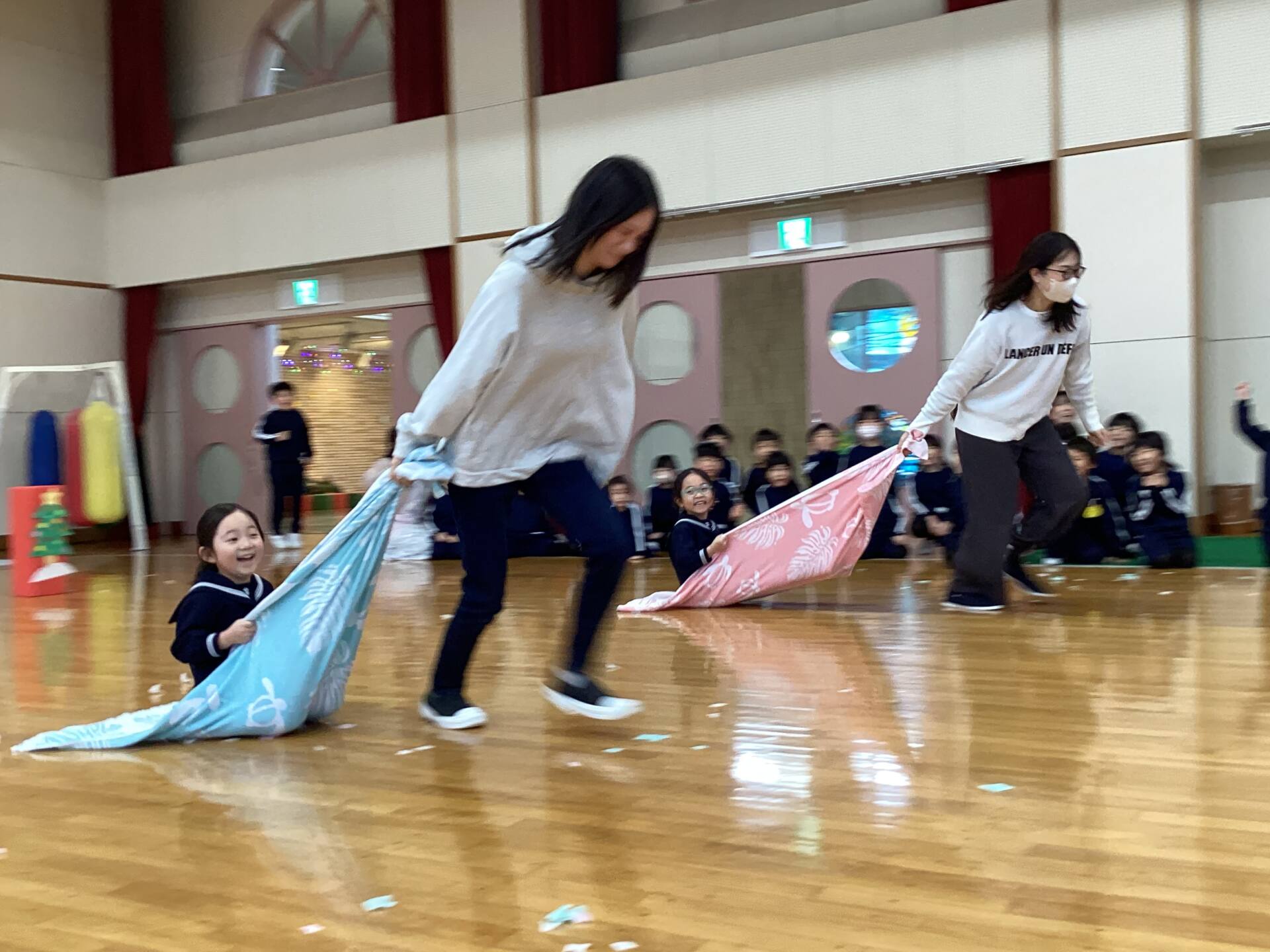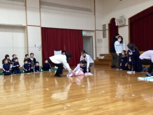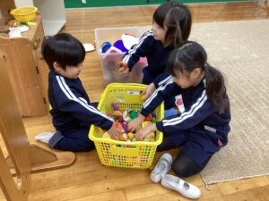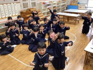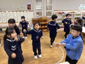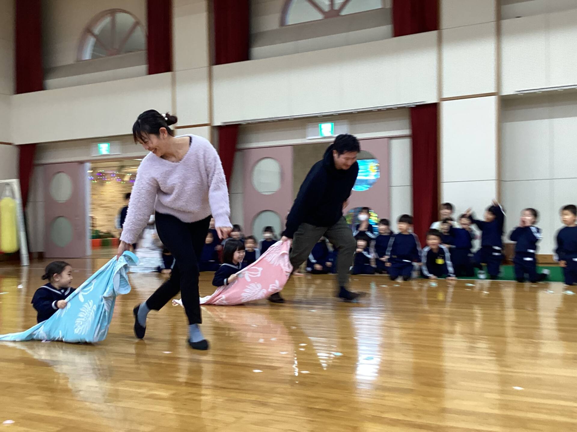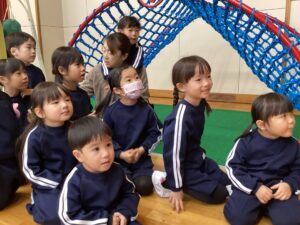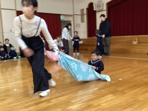 今日はタオルをそりに見立てたソリ引きレースとボール渡しゲームを行いました♪笑顔あふれるお誕生会でした☺️🥰