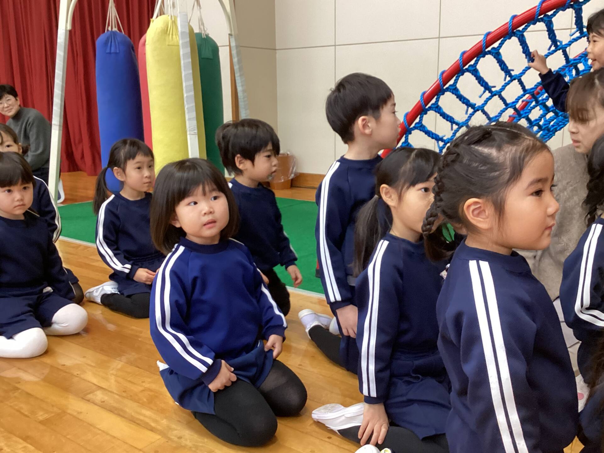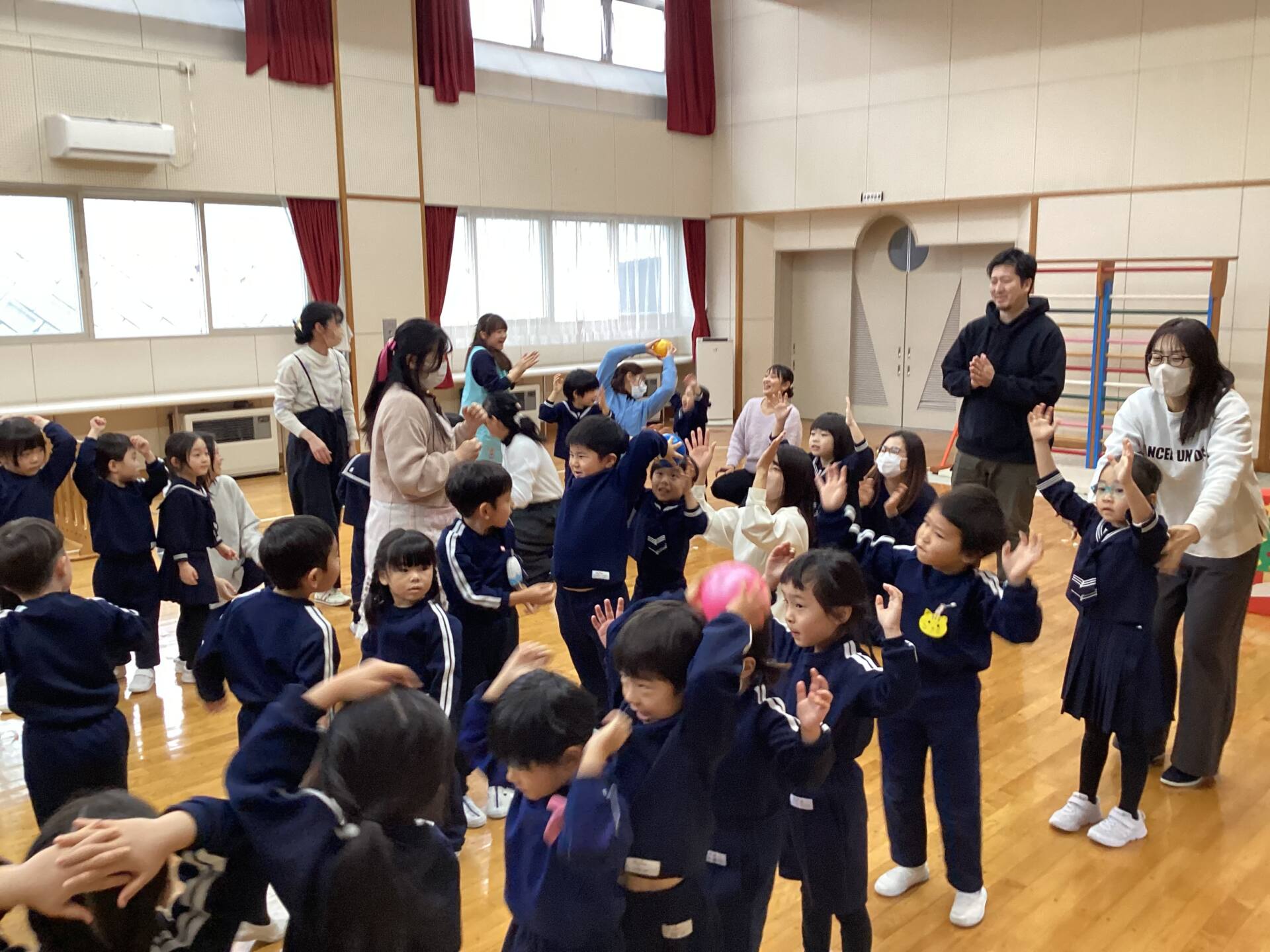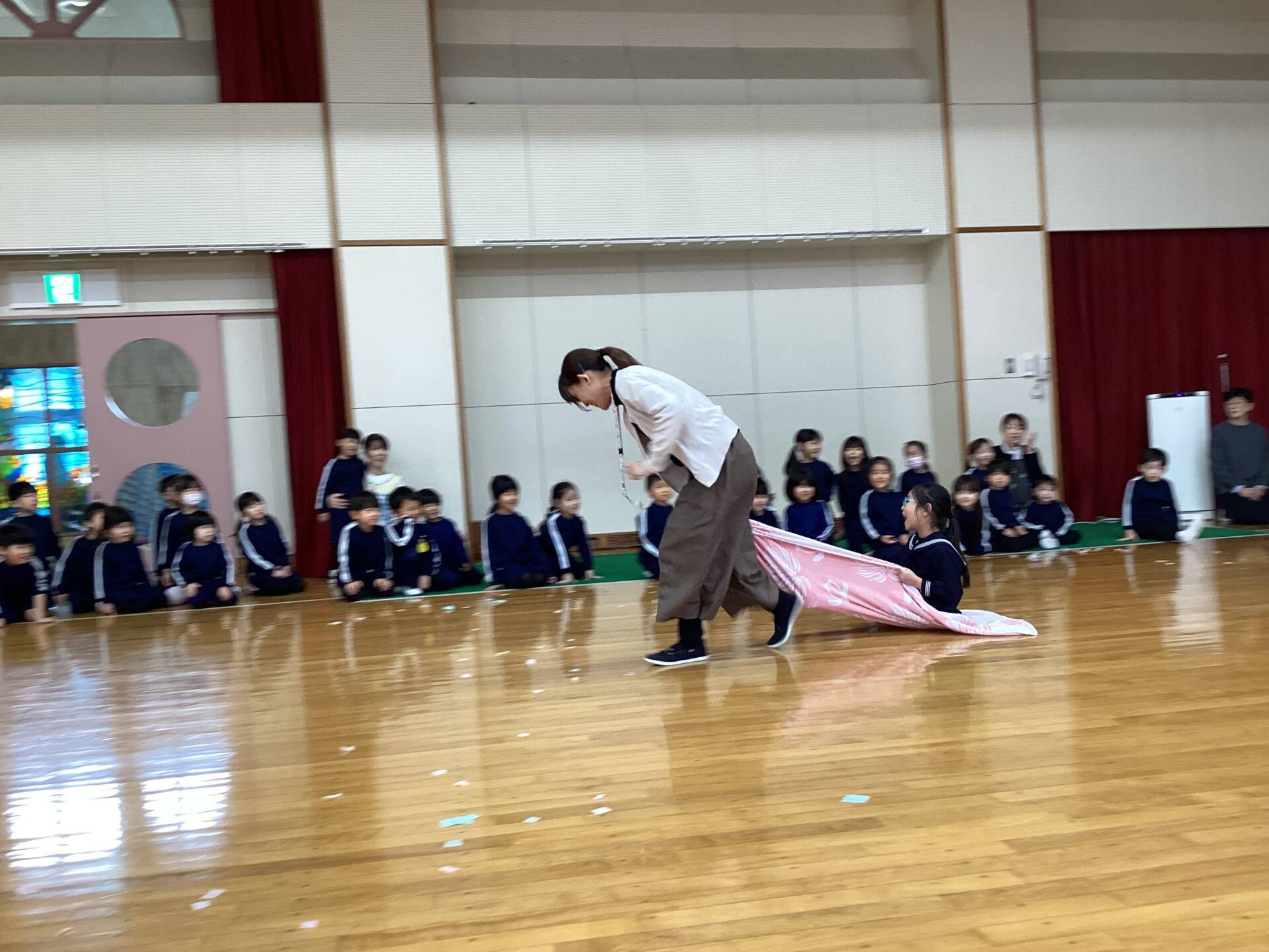 今日はタオルをそりに見立てたソリ引きレースとボール渡しゲームを行いました♪笑顔あふれるお誕生会でした☺️🥰