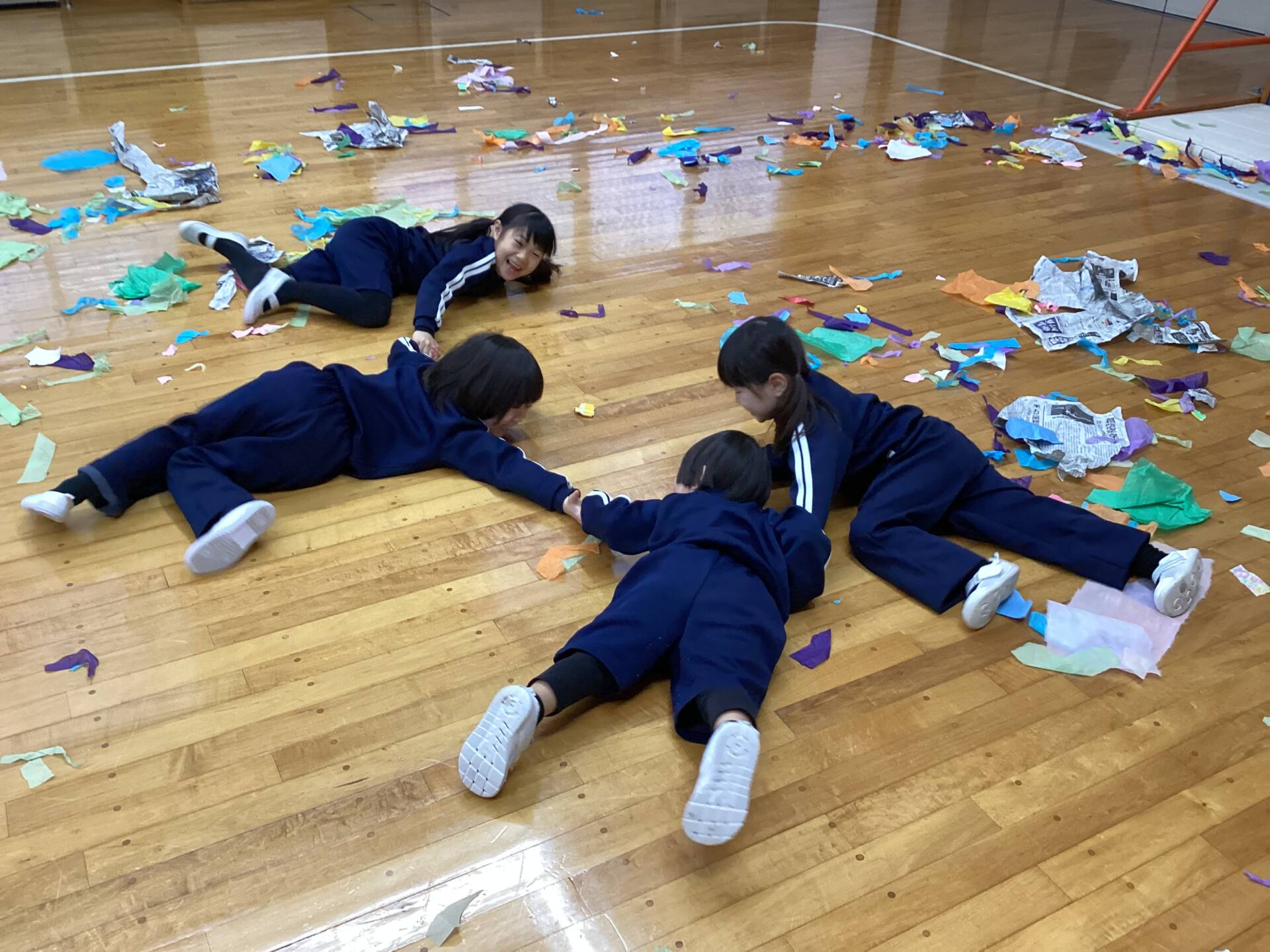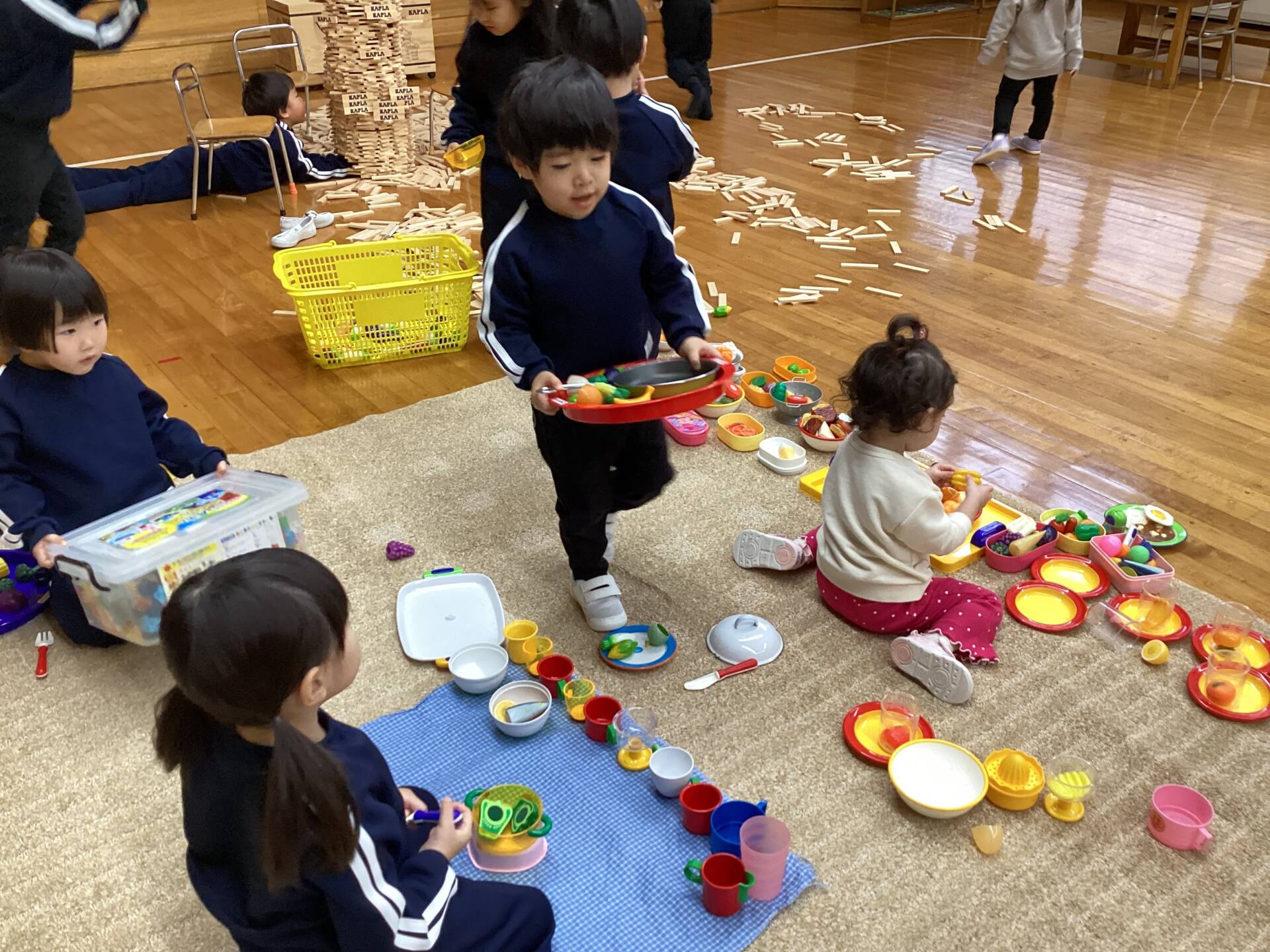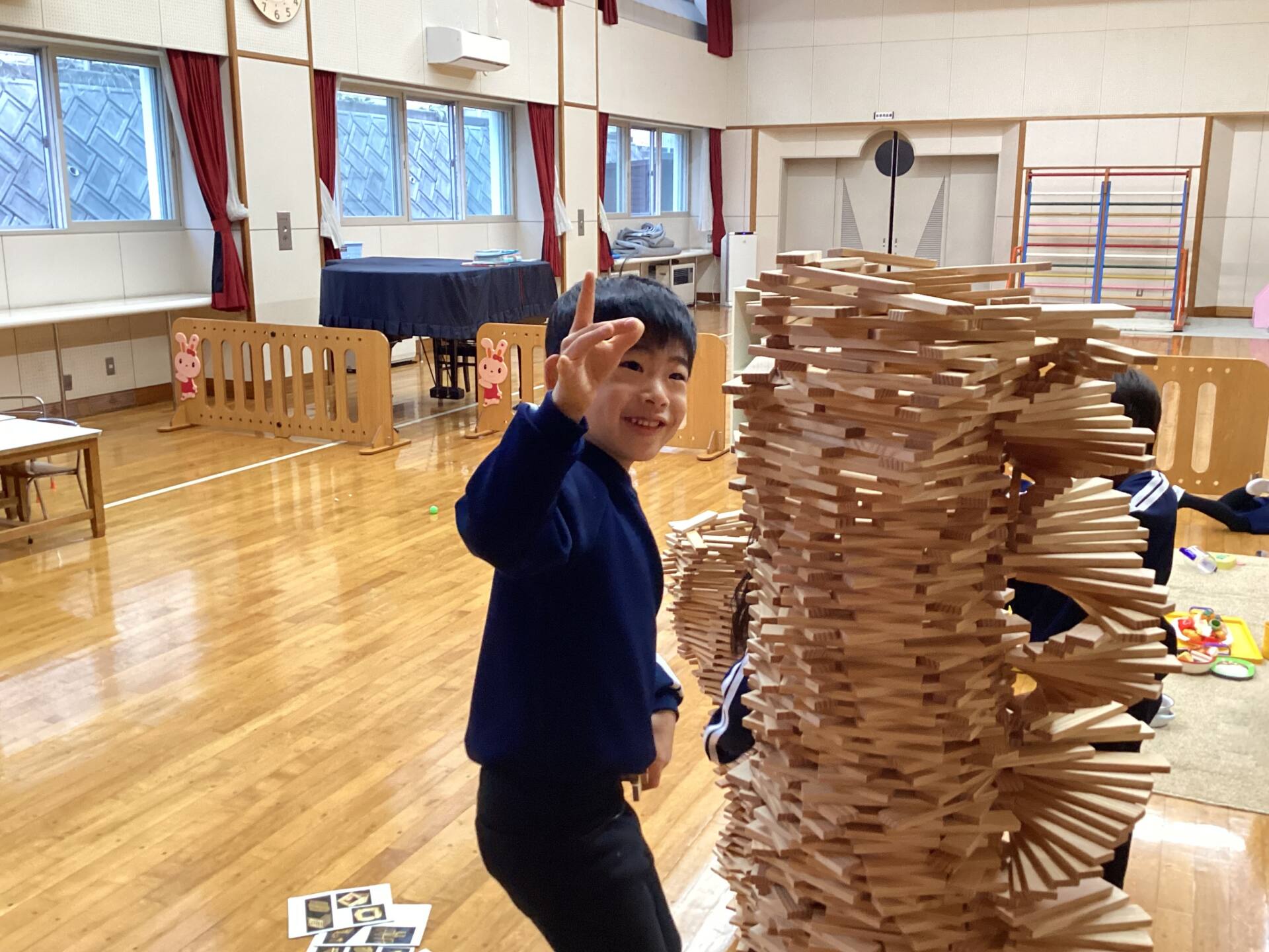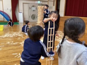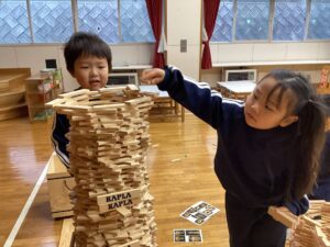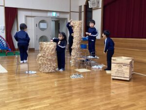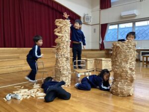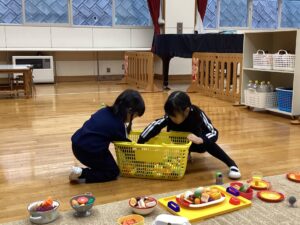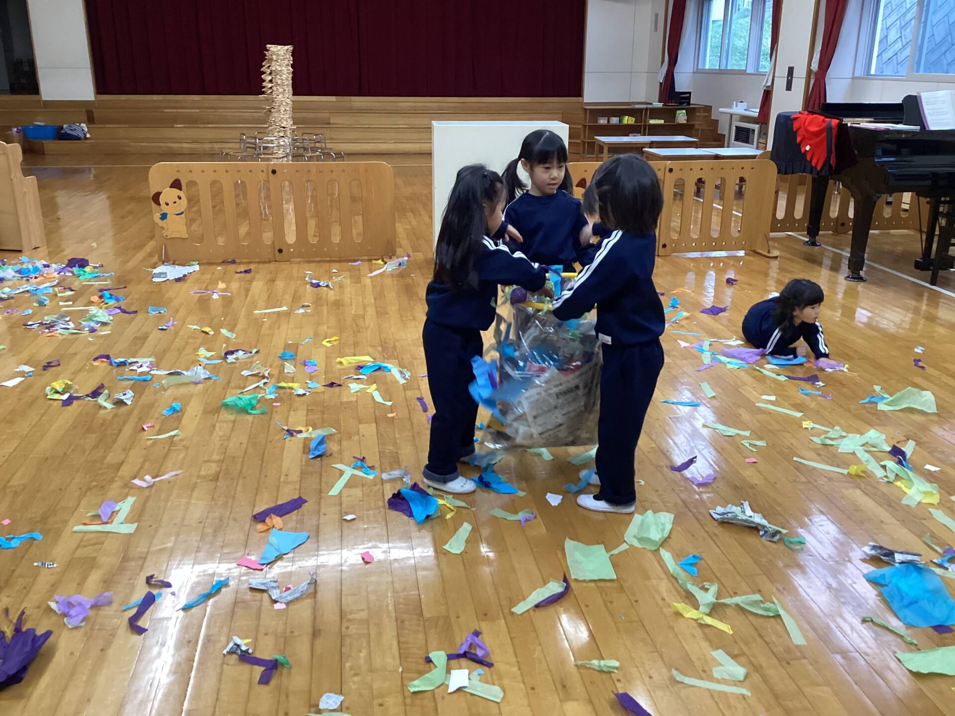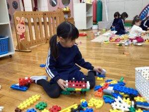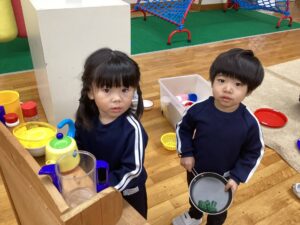 冬休みに入っても雪が積もりません❄️でも元気いっぱい体を動かして遊んでいます😄朝はカプラ積み、ママごと、ブロックで遊びました🍝🍜🍔11時からは皆んなで新聞や包装紙をちぎって雪をつくりました❄️カラフルな雪に❄️大喜び🩵明日はクリスマス🎄で休園です♪