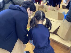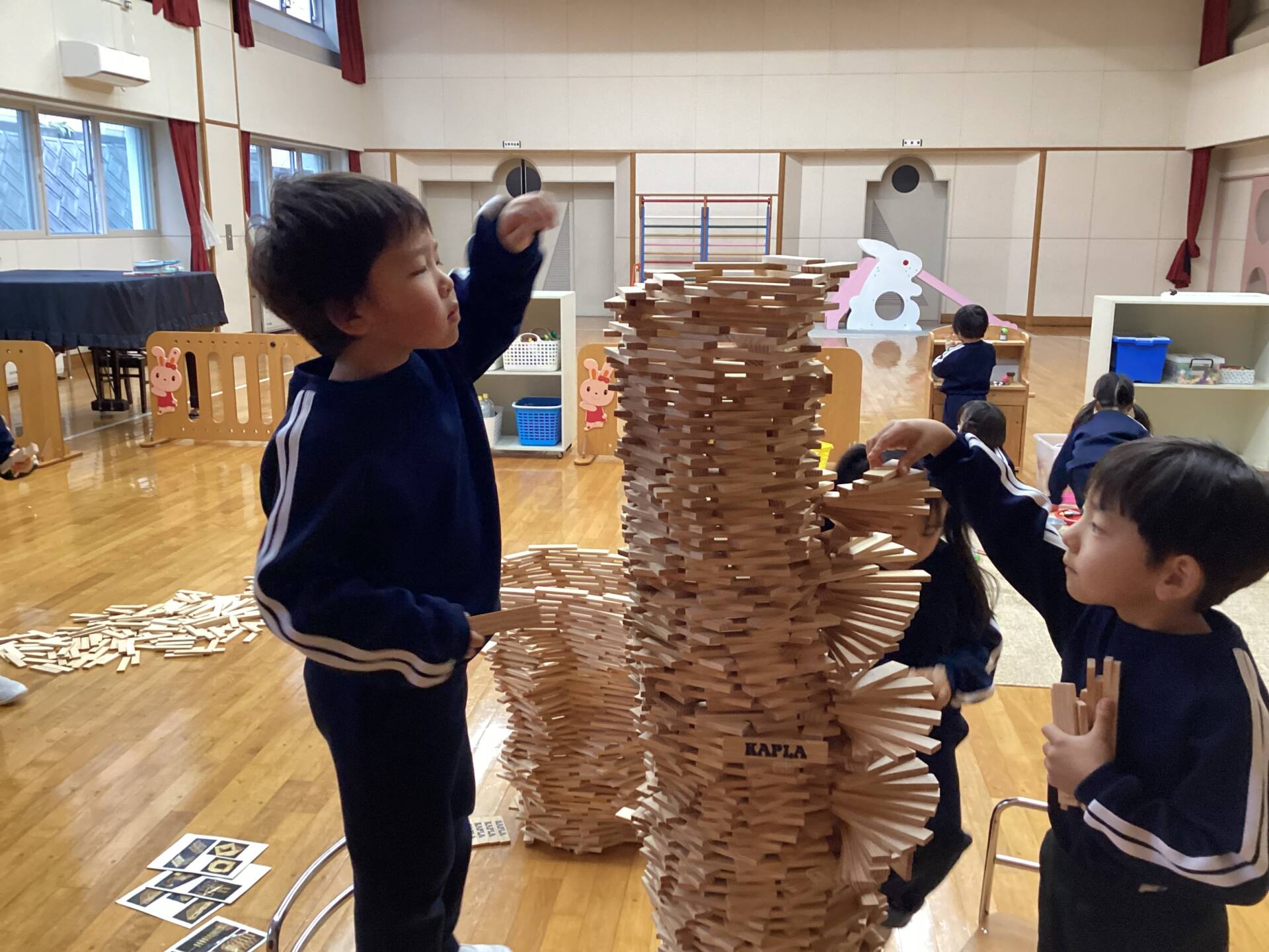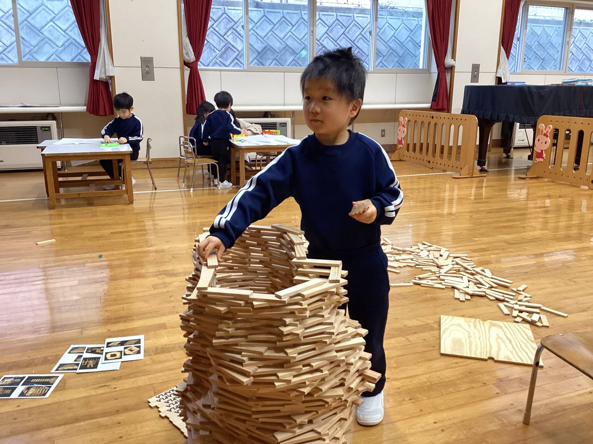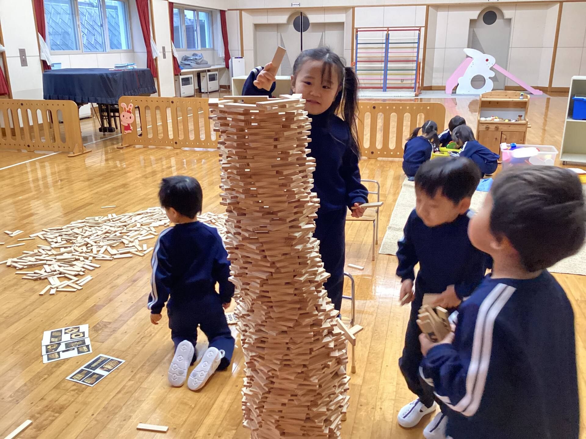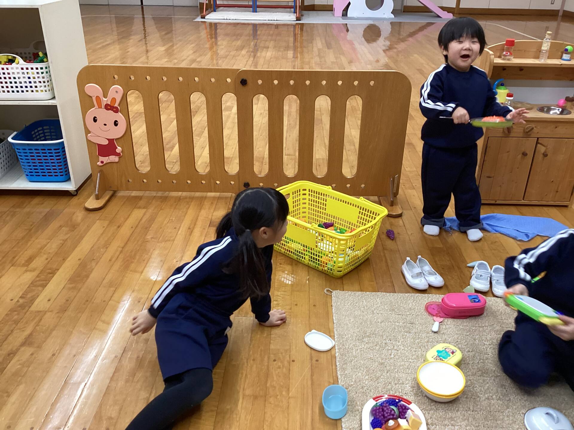 冬休みに入っても雪が積もりません❄️でも元気いっぱい体を動かして遊んでいます😄朝はカプラ積み、ママごと、ブロックで遊びました🍝🍜🍔11時からは皆んなで新聞や包装紙をちぎって雪をつくりました❄️カラフルな雪に❄️大喜び🩵明日はクリスマス🎄で休園です♪