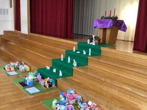 今日はクリスマスお祝い会が行われました🎄🕯️ご家庭で作ってくださった献金箱とこころの花束を神様にお捧げし皆んなでお祈りをしました。🙏