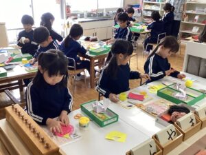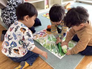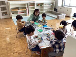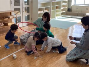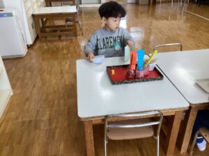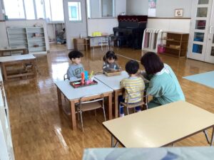 バンビー二クラス(2歳児クラス)が始まりました!定員は6名です♪モンテッソーリの教具を使ってお仕事をしたり、体を動かして遊びました!また来て下さいね!