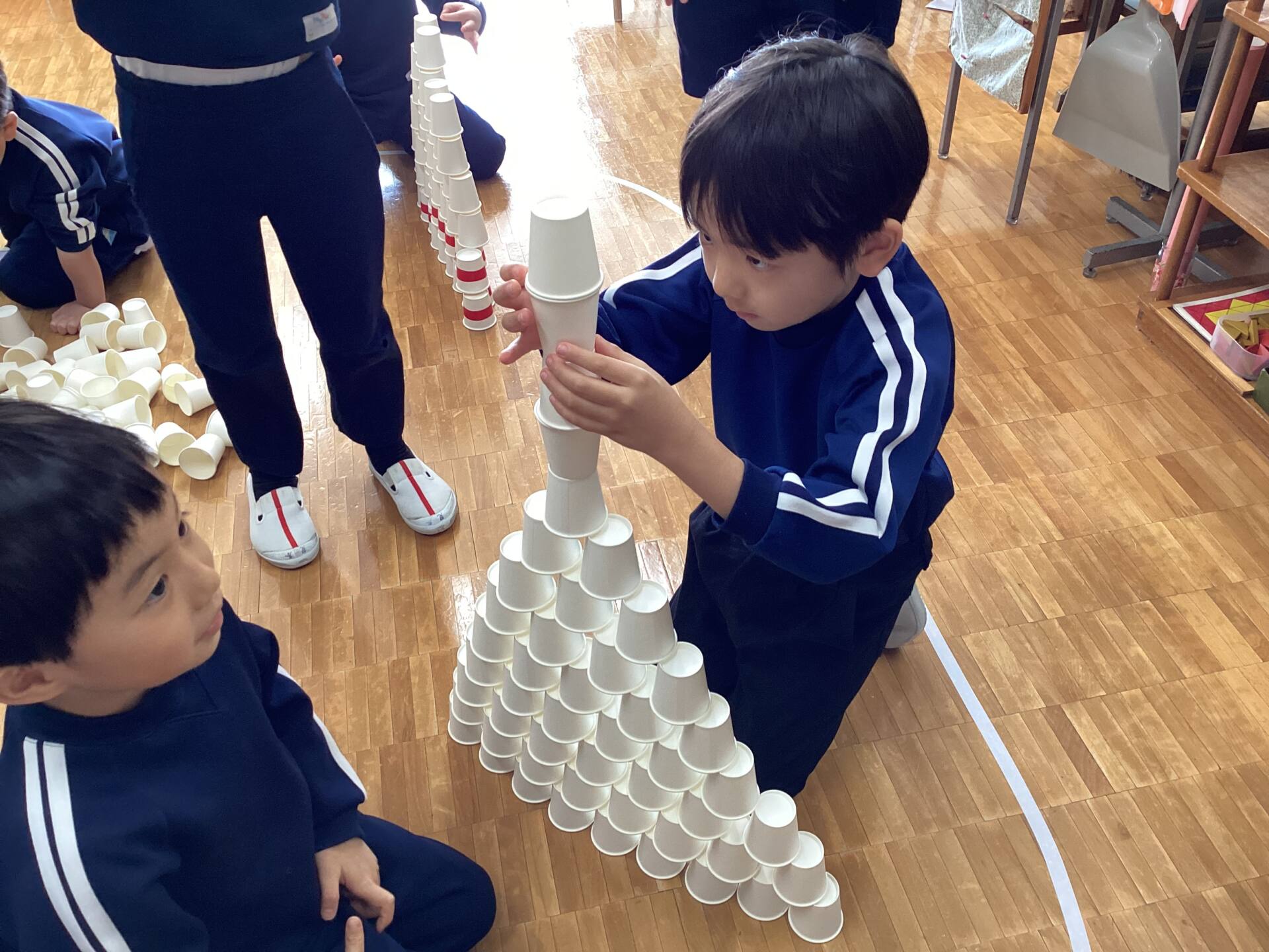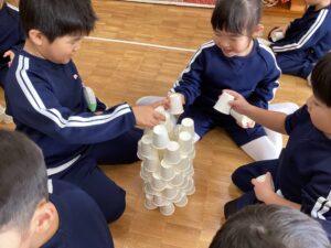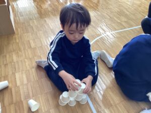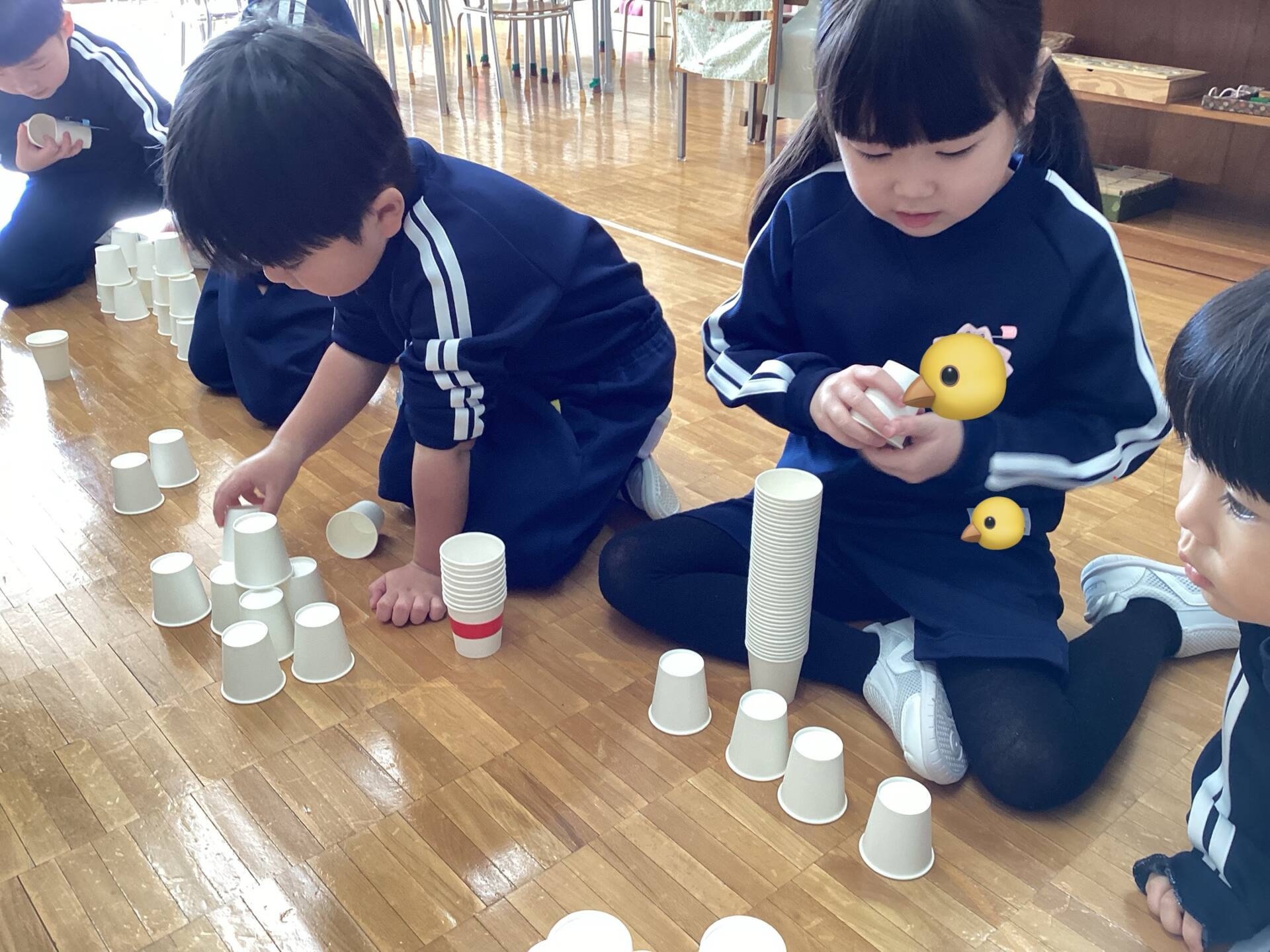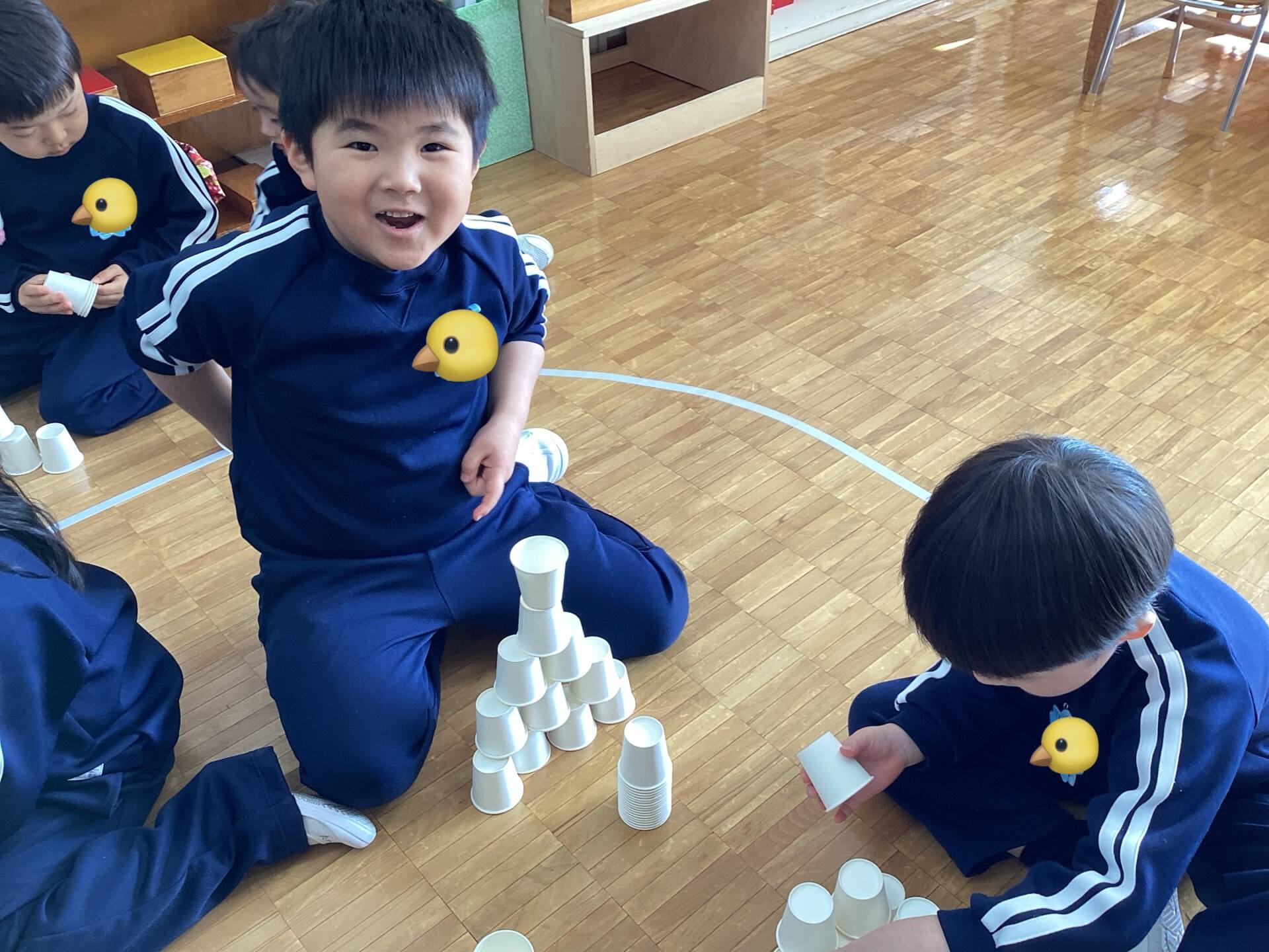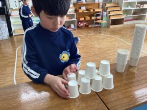 沢山紙コップを準備するとタワーにしたり並べたり工夫をしながら楽しんでいました😆🌟