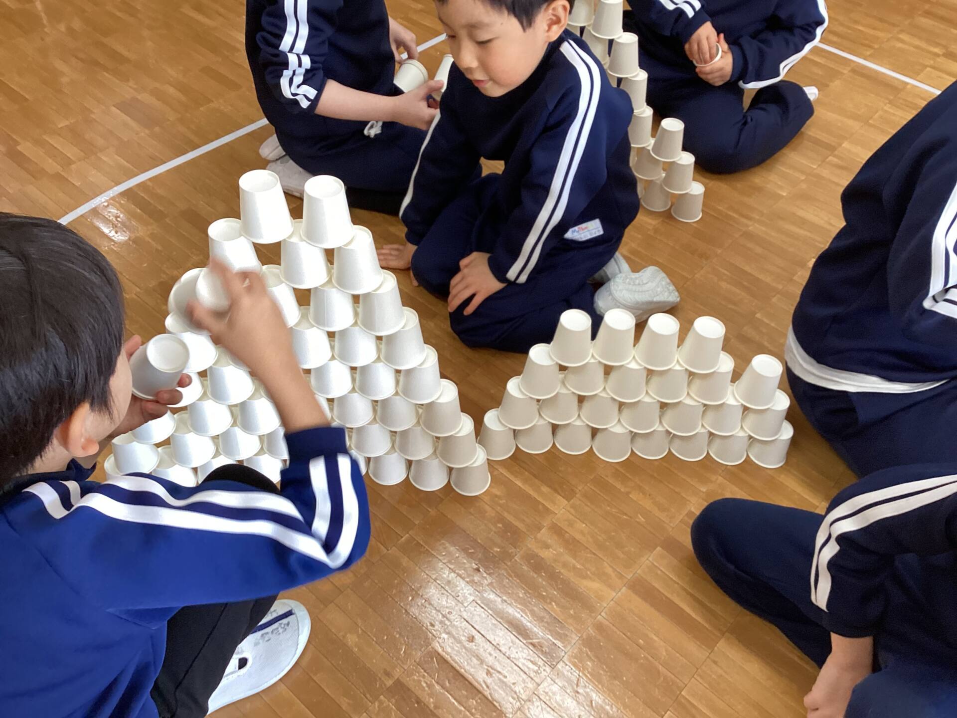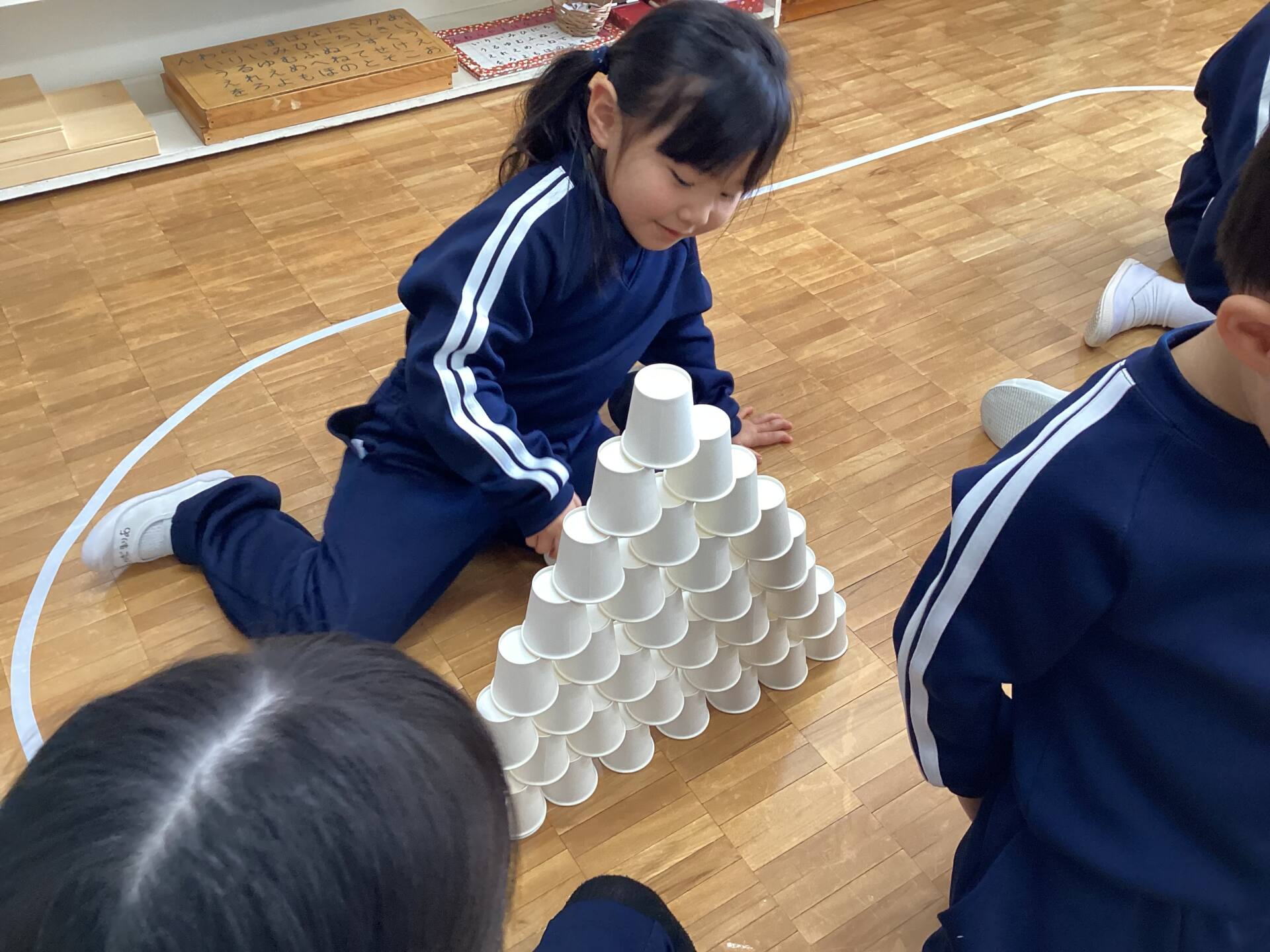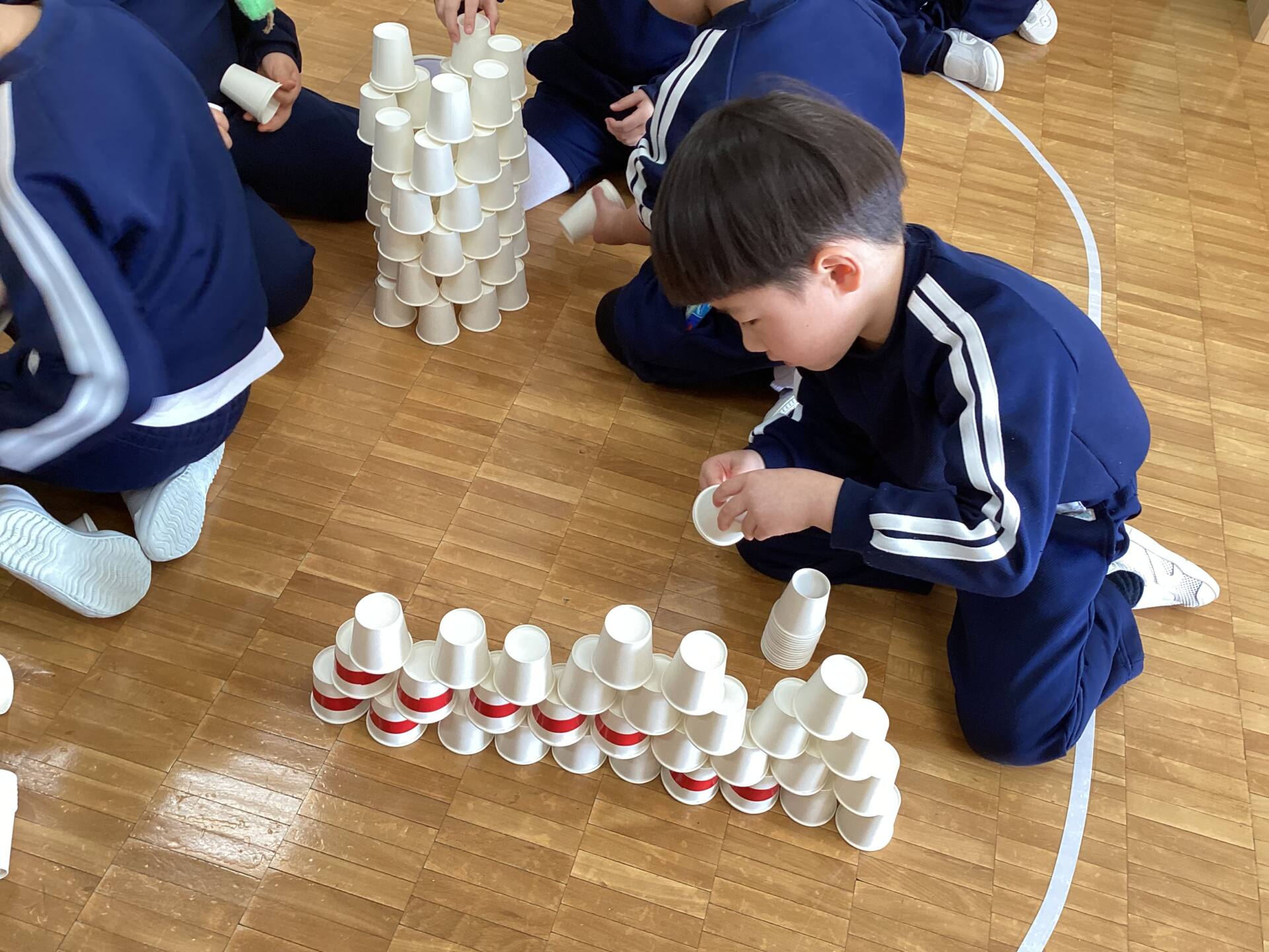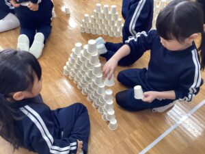 沢山紙コップを準備するとタワーにしたり並べたり工夫をしながら楽しんでいました😆🌟