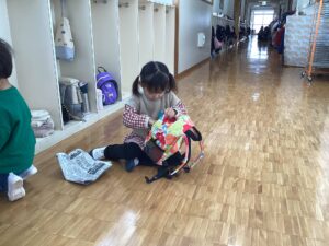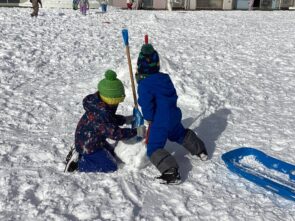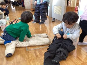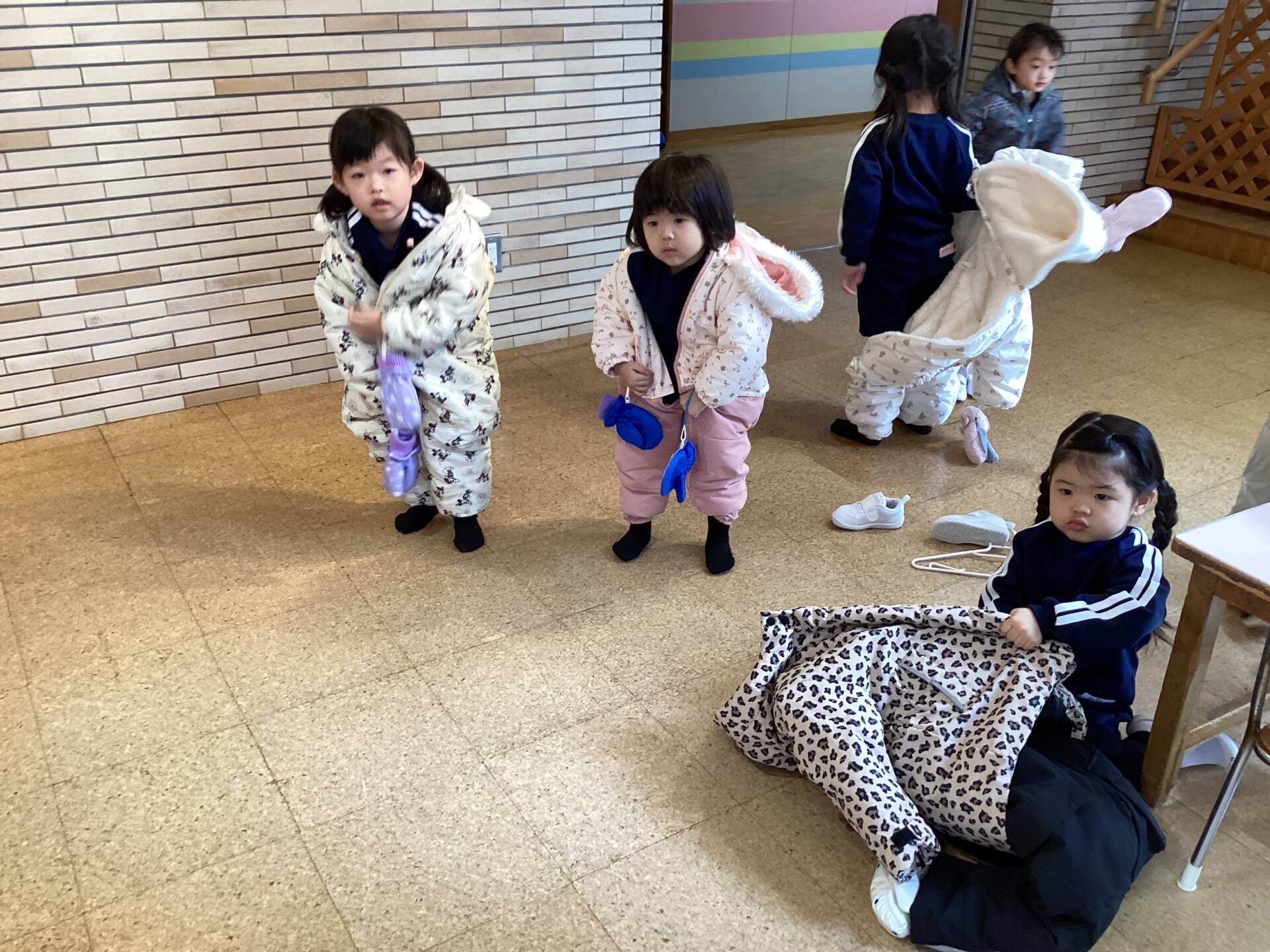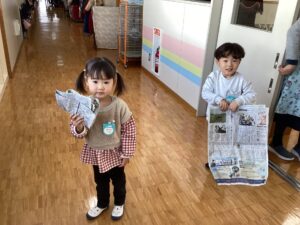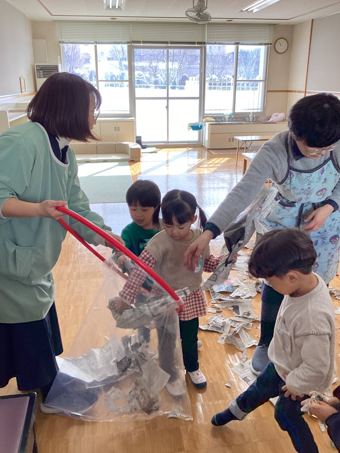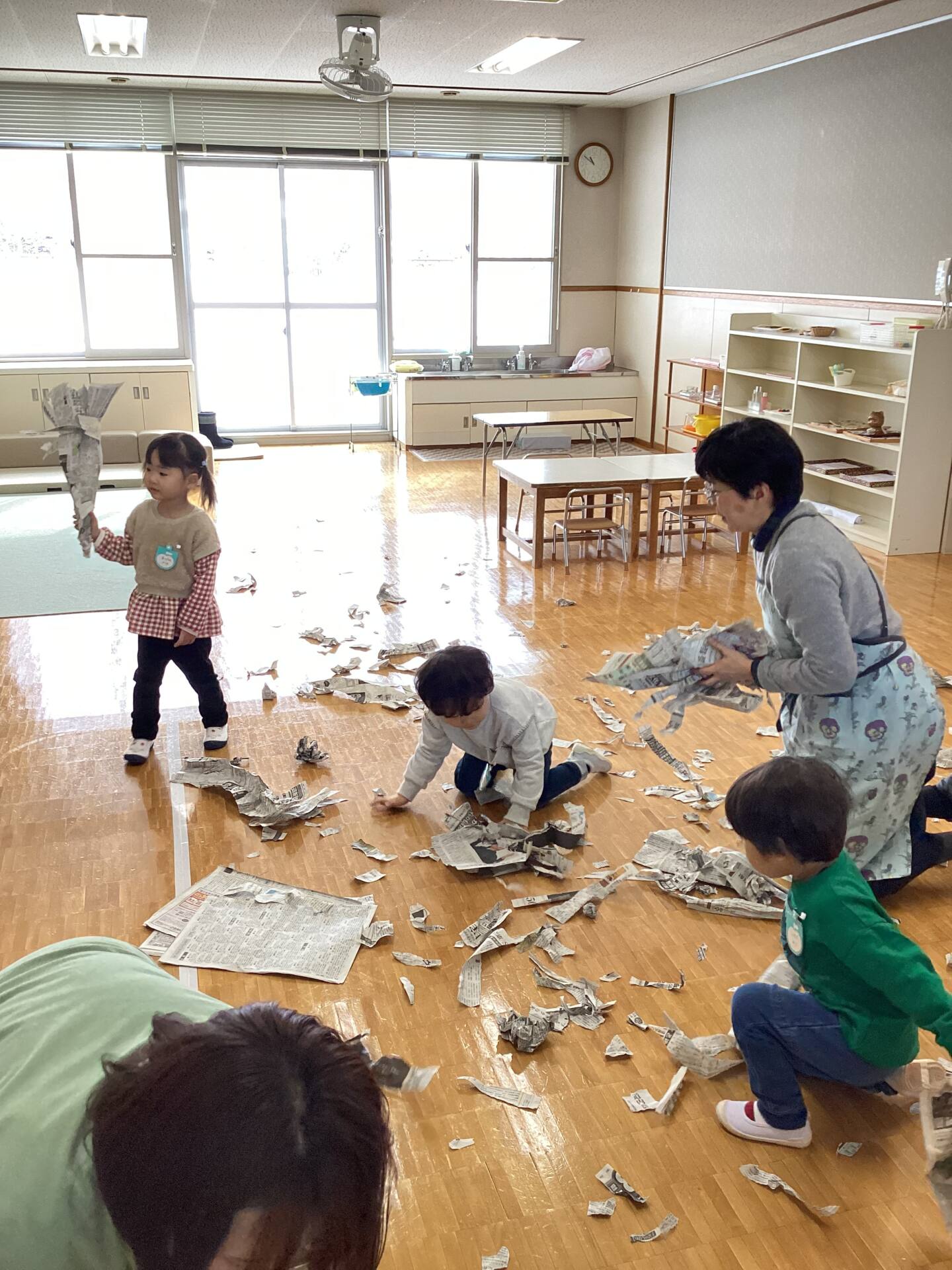 今日は2歳児クラス バンビー二でした✨お仕事をしたり、新聞遊び、雪遊びをして過ごしました♪