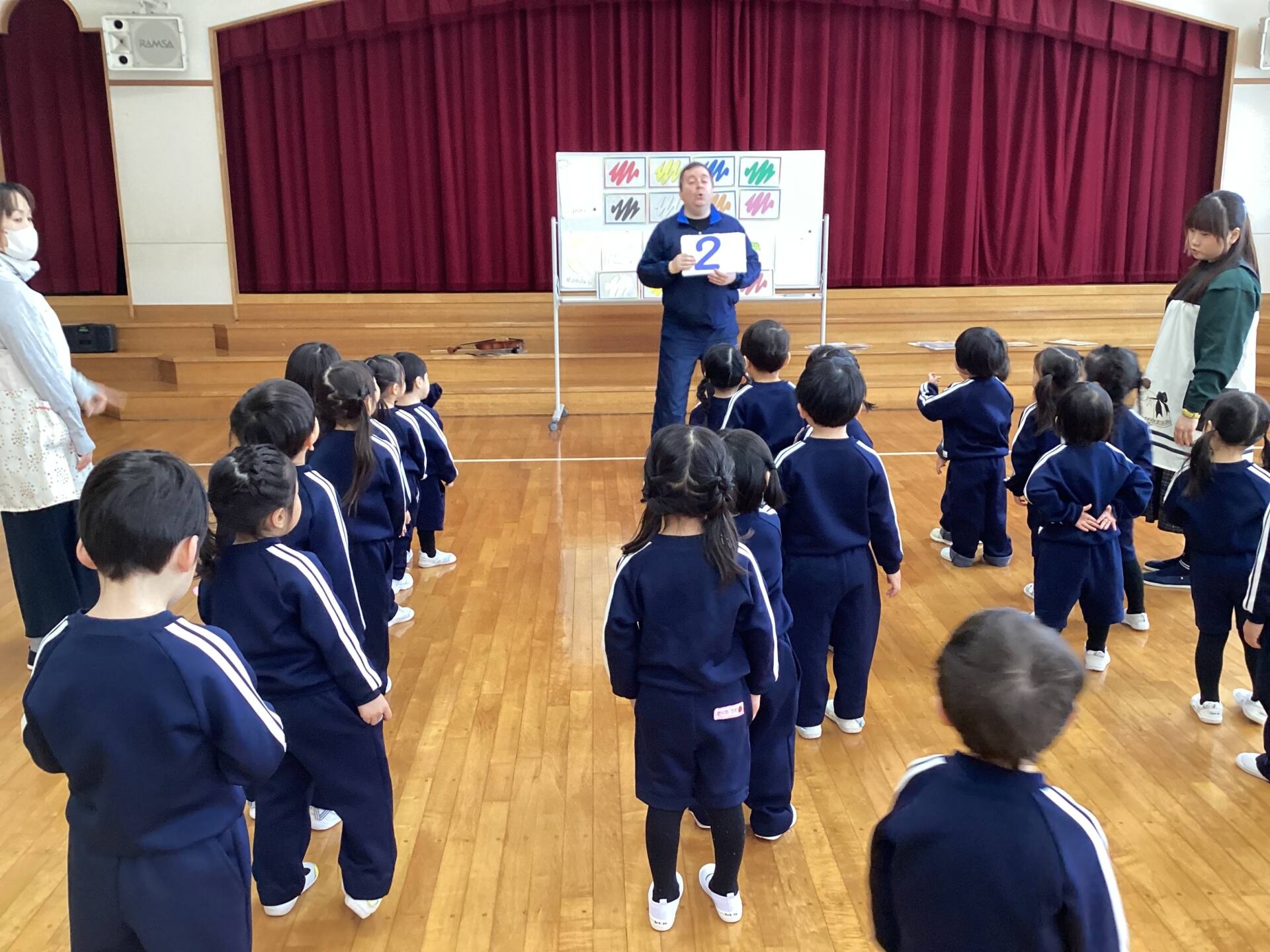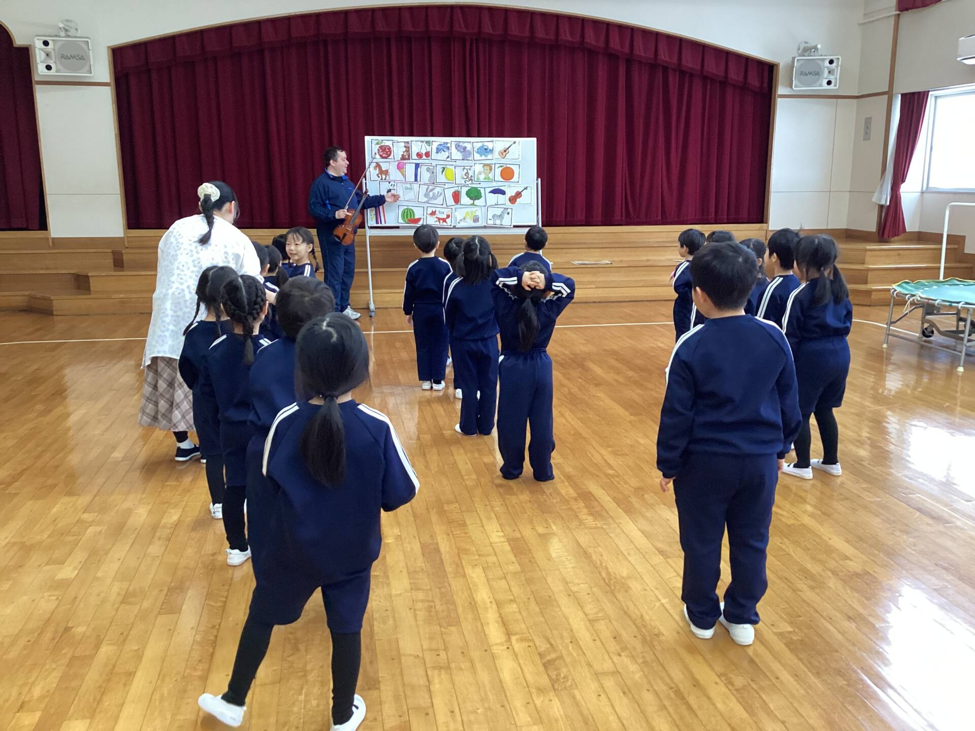 今日は英語遊びでした💕大好きなトーマス先生とバイオリンの🎻音色に合わせて今日も楽しく歌いました☺️