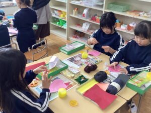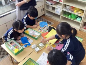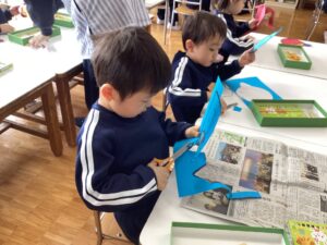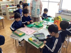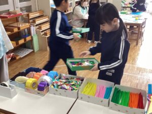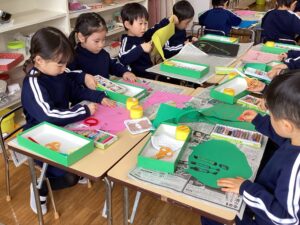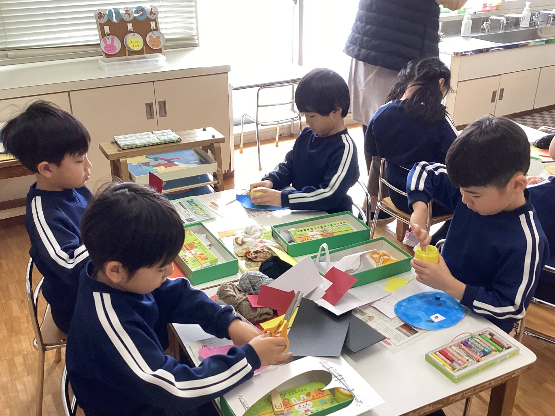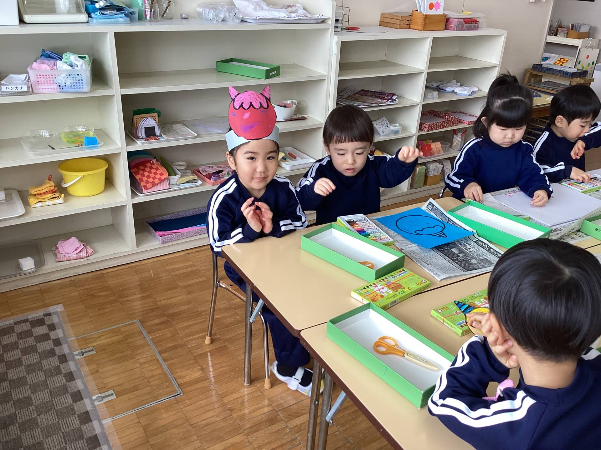 節分に向け鬼のお面作りや豆を入れるつの箱の準備が進んでいます😄皆んなはどんな心の鬼をやっつけるのかな?楽しみですね😊!