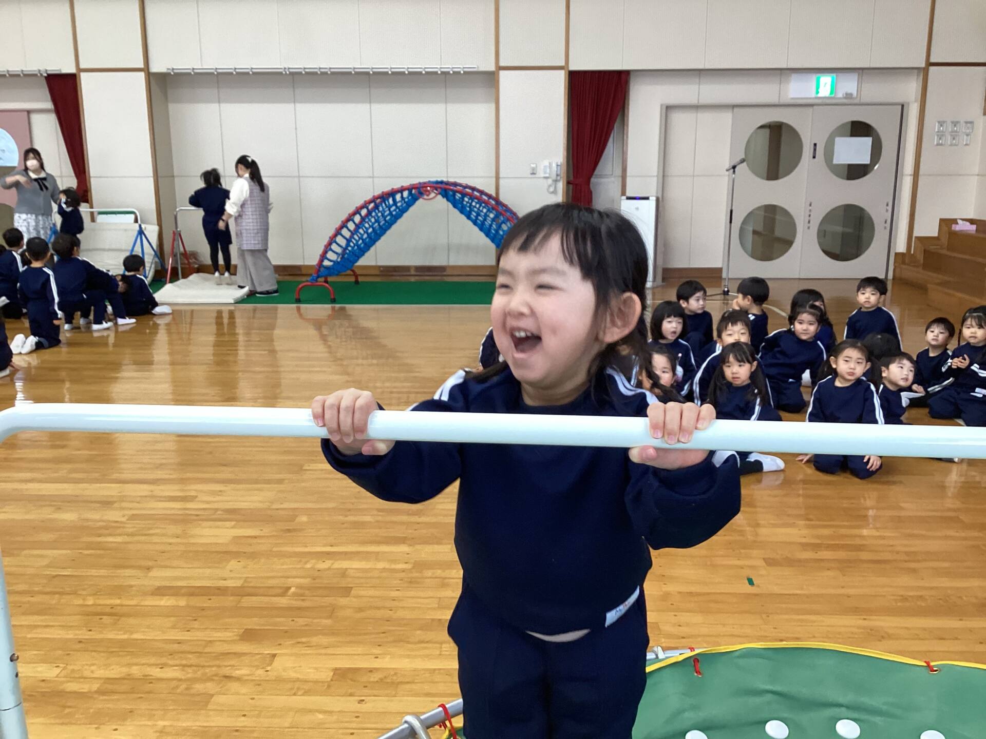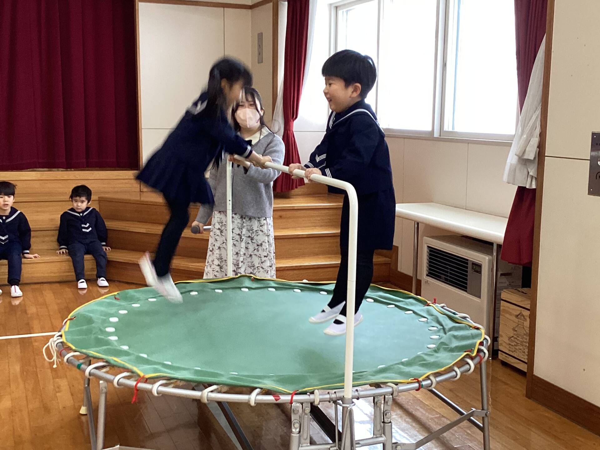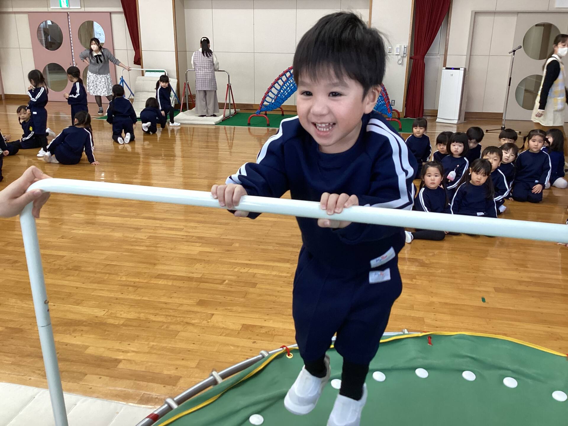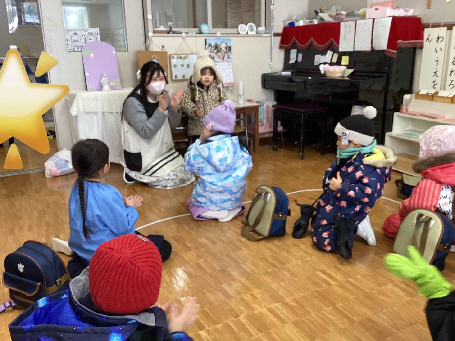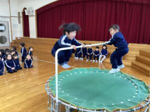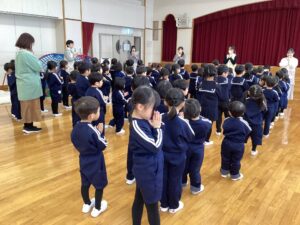 皆んなでお祈りをしました🙏遊戯室に新しくトランポリンと鉄棒が加わりました。遊び方や約束も皆んなで確認しました🌟来週からは雪遊びが始まります。⛄️スキーウェア、ハンガー、着替え、ビニール袋の準備お願いいたします💕⛄️楽しみですね♪😊