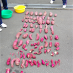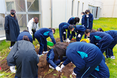 中2 サツマイモ収穫 2020.10.16 中学2年生が技術の時間でサツマイモの収穫をしました 本校の中庭に、臨時休校が明けた6月頃にサツマイモの苗植えを行い 昨日、収穫作業を行いました 気温が低い中、生徒達は一生懸命サツマイモを掘りおこしました by k
