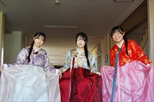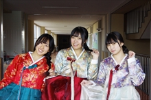 韓国文化 2025.11.30 高校1、2年生LBコースの総合的な探究の時間で韓国の大起高等学校とのオンライン交流が行われました また高校3年生総合進学コースのWillB Programの「韓国文化」では韓国の伝統的な衣装を着るチマチョゴリ着用体験が行われました